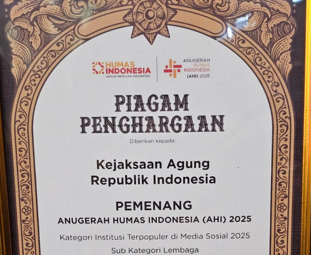 Kejaksaan Agung memperoleh predikat Institusi Terpopuler di Media Sosial 2025, berkat kerja sama internal dan dukungan media massa dalam menyampaikan kinerja penegakan hukum.